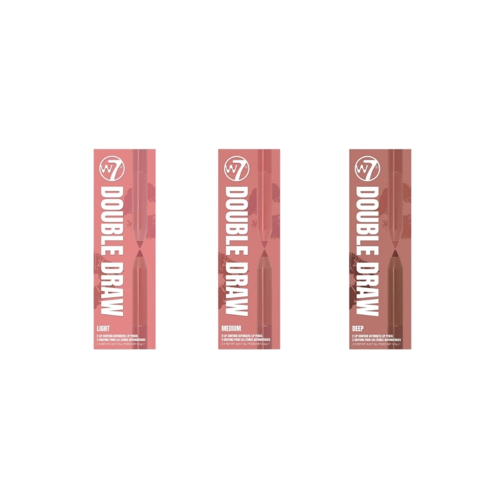 Achieving a statement lip look has never been easier with W7's Double Draw Lip Contour Duo! These automatic lip pencils come in perfectly paired shades to shape, shade, and define in 3 simple steps!